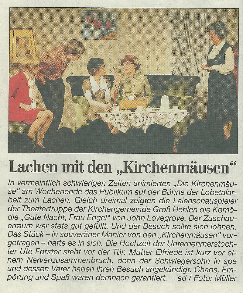 Im Februar 2009 spielten wir an drei Tagen die Komödie "Gute Nacht, Frau Engel" von John Lovegrove.