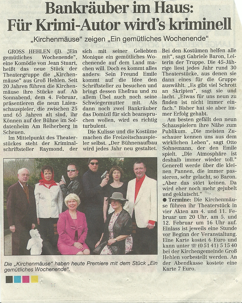 Im Februar 2006 spielten wir an drei Tagen die Komödie "Ein gemütliches Wochenende" von Ray Cooney.